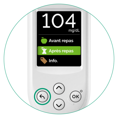 Pour appliquer une information "Après repas", appuyez sur la touche retour et sélectionnez "Après repas" et appuyez sur le bouton OK.